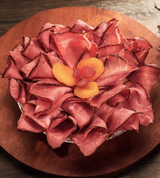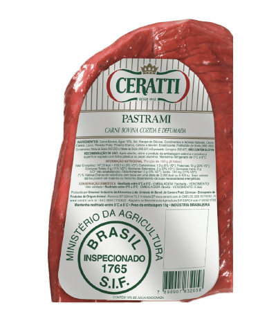 O pastrami Ceratti é uma verdadeira experiência gastronômica. Feito com corte íntegro de carne bovina, recebe um blend especial de condimentos naturais e passa por um processo rigoroso de defumação, que intensifica sua suculência e aroma inconfundível. O equilíbrio entre especiarias e sal realça o sabor suave da carne, resultando em um produto sofisticado e pronto para consumo. Perfeito para entradas e combinações gourmet.